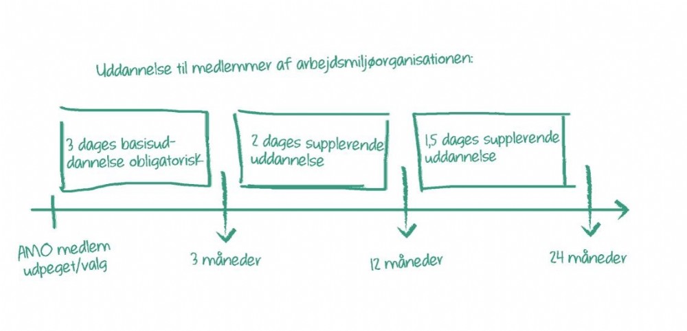 Foruden den obligatoriske arbejdsmiljøuddannelse skal arbejdsgiveren tilbyde den lovpligtige supplerende arbejdsmiljøuddannelse til medlemmerne af Arbejdsmiljøorganisationen (I daglig tale omtales som AMO)..